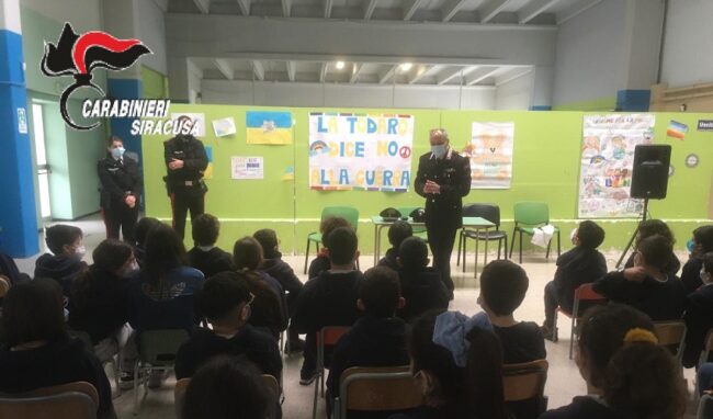 I Carabinieri della Compagnia di Augusta, nell’ambito del progetto di cultura e diffusione della legalità, hanno incontrato gli studenti delle classi primarie e secondarie dell’Istituto comprensivo “Valle dell’Anapo“.